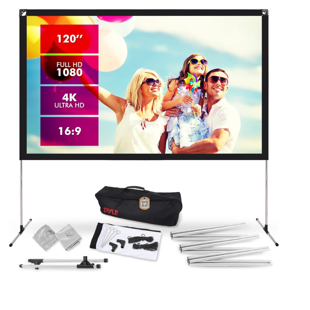 The Pyle projector screen offers a versatile and portable solution for indoor and outdoor movie screenings. Its water-resistant material makes it suitable for outdoor use, and its foldable design makes it easy to store and transport.