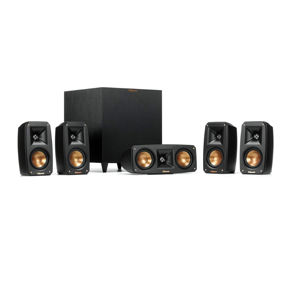 The Klipsch Black Reference Theater Pack is a high-end sound system that delivers exceptional performance and unmatched aesthetics. With its sleek black finish and compact design, it easily blends in with any home theatre setup.