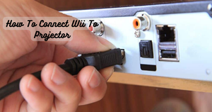 - Take the other end of the adapter and connect it to the RCA input on your projector.